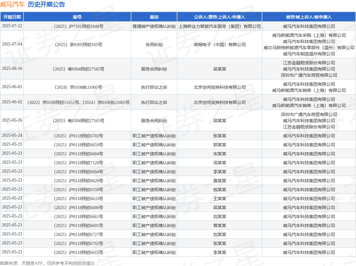 本站消息要配资,根据天眼查APP显示,近日公布了一则威马汽车科技集团有限公司作为被告/被上诉人的开庭公告,详细内容如下: