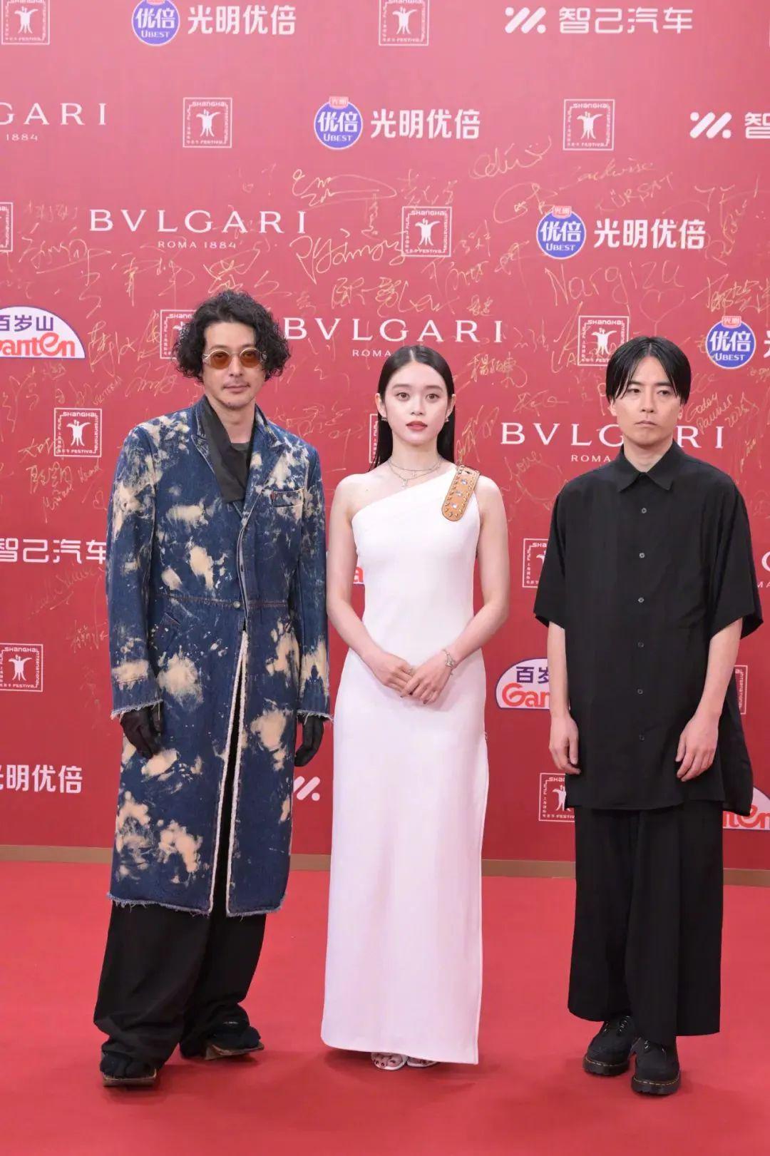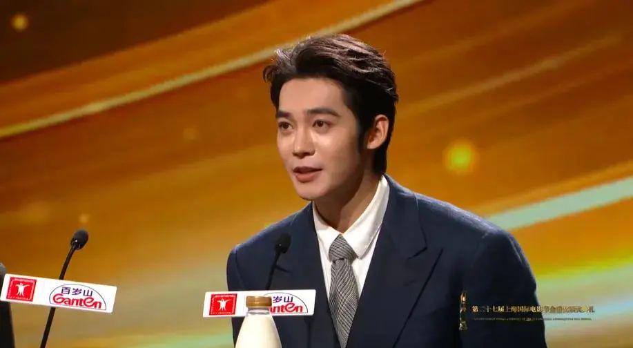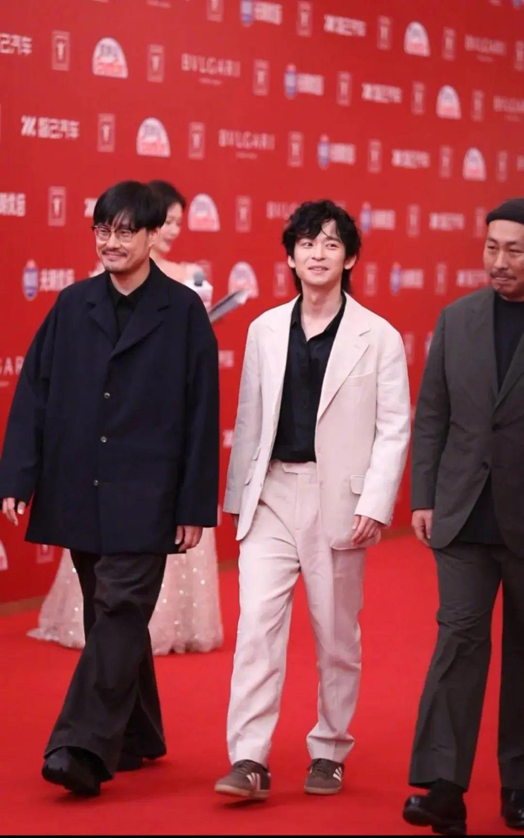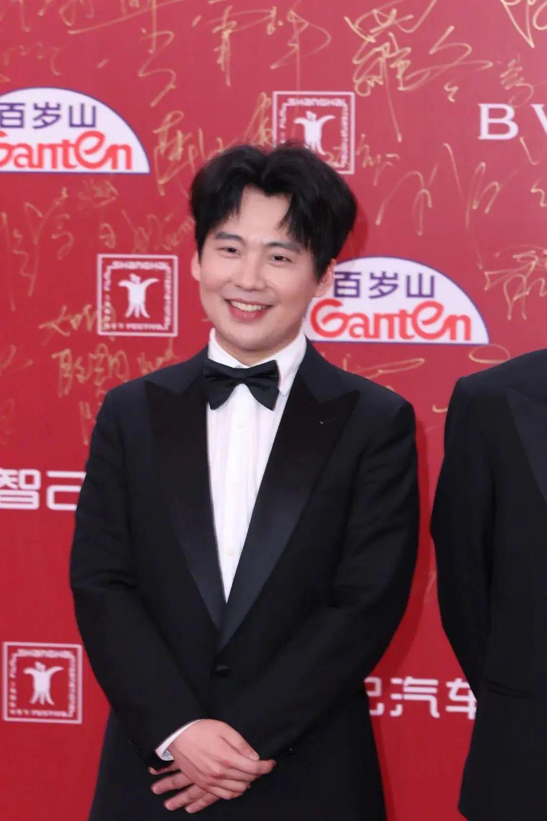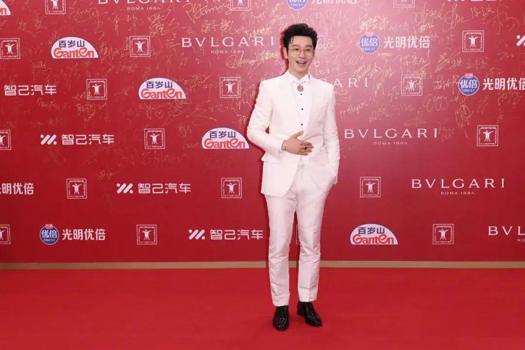 做了导演之后的董子健看起来松弛了不少,白西装黑衬衣很成熟商务。