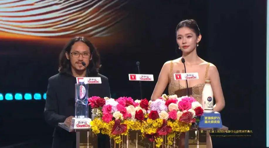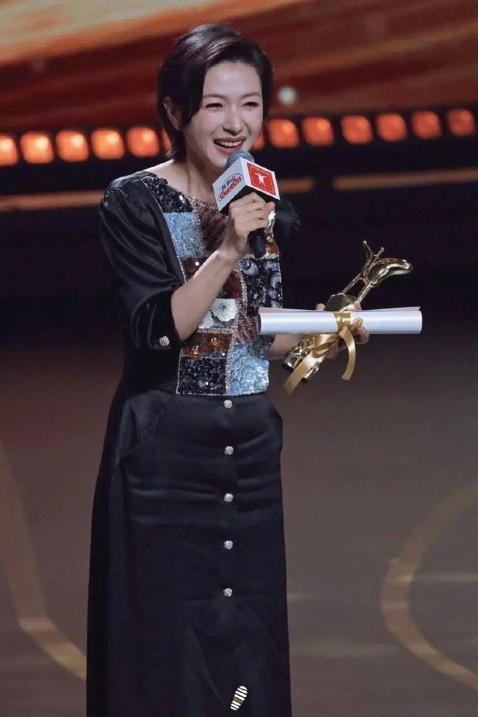 拿到最佳女主角的万茜换了一身礼服,精气神那是相当的好,但是礼服也是有点老气了,中间的这些拼接图案撑不起她拿奖的霸气。