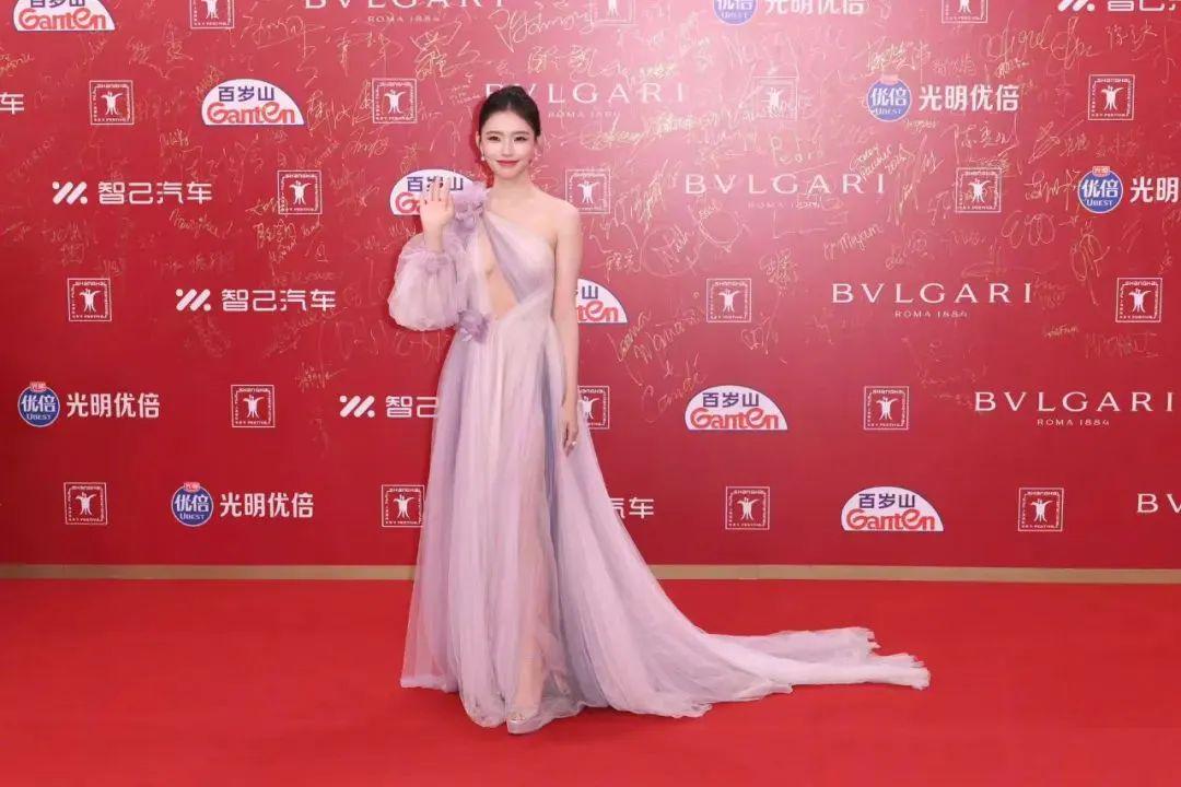 林允这次选择了一条淡紫色的露手臂的薄纱裙,胸口处的设计很大胆,小露性感很敢穿,妆容方面她也一直都很在行,展现了自己精致的脸,确实会穿审美又在线。