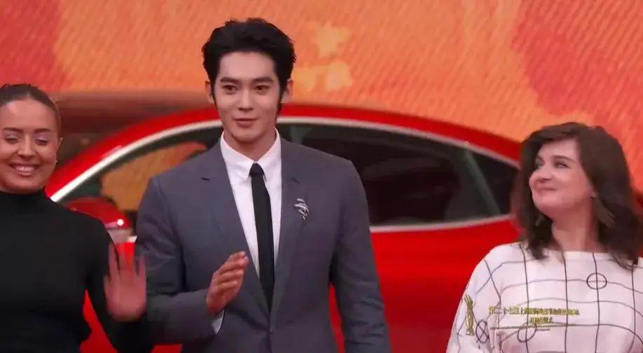 于适的第二套西装依然是灰色,但这一套风格成熟了许多,虽然造型成熟,但是于适的星星眼看起来还是好嫩,尤其是用这种眼神唱歌的时候,看起来好深情。